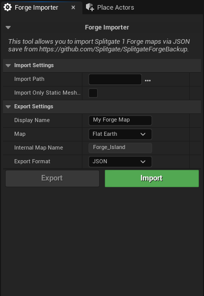 To make this as user friendly I added the import screen as an editor tool so it appears in the list with things like, modelling mode, the landscape tool and even gave it a very neat looking UI created entirely in slate (Unreals C++ UI library).
