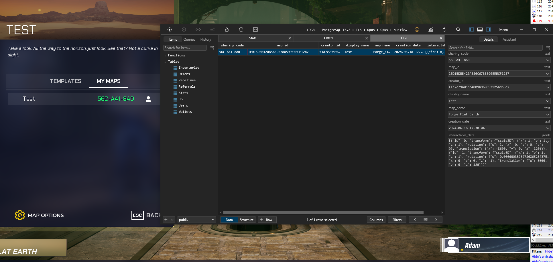 This is a picture of a Database implementation I had for storing users, shop offers and forge maps, this is the latest version of that backend as the last thing I ever added was UGC map support just before the games services were closed!