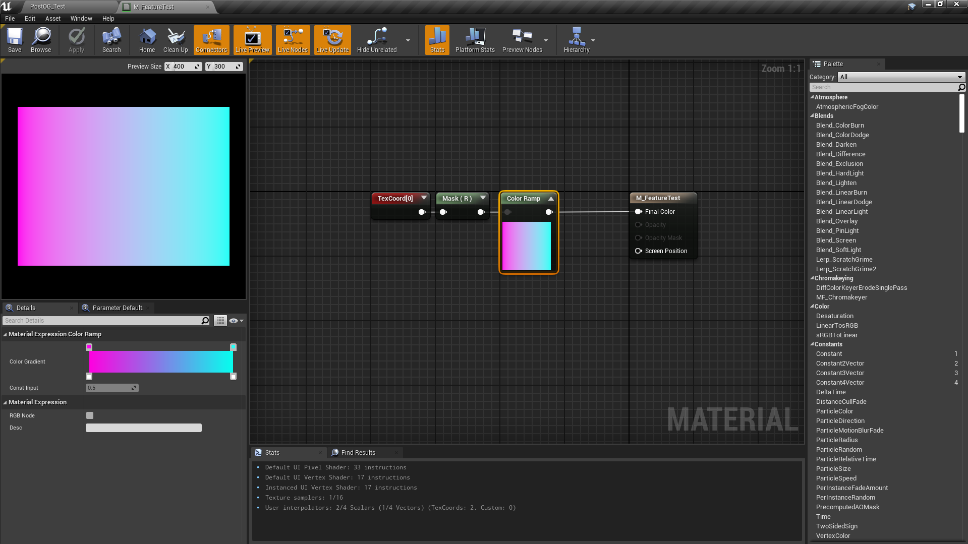 Colour Ramps are a much loved feature that blenders materials use for many things, it got partially added in UE 5.6 but disabled due to a bug. I thought the node was really useful so I backported it (minus the bug)!